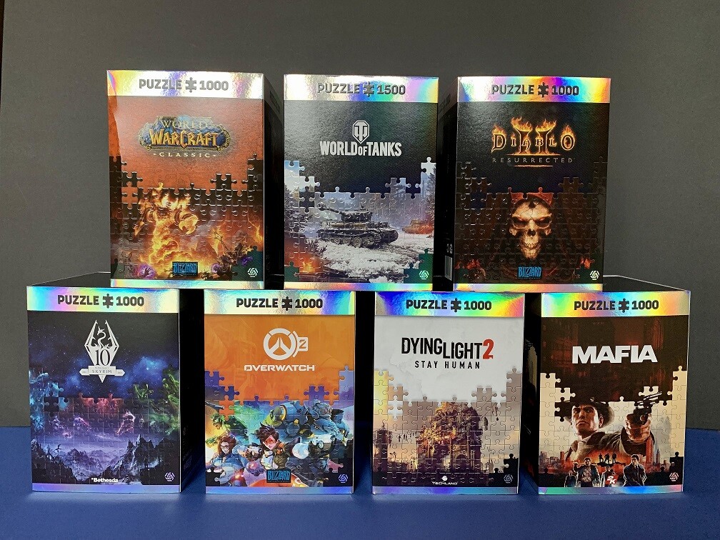 Good Loot - это пазлы из материалов высокого качества с интересными артами, выполненными в уникальной графике от разработчиков игр. В портфолио GOOD LOOT уже есть пазлы по таким популярным играм, как The Witcher, Cyberpunk 2077, Watch Dogs: Legion, Mafia III, Overwatch, Dying Light 2, Fallout, Assassin’s Creed, Diablo, Skyrim, World of Warcraft и многим другим. Благодаря пазлам от GOOD LOOT фанаты игр и пазлов смогут переместиться в свои любимые игровые миры, собирая их буквально по кусочкам! Серия пазлов будет постоянно расширяться, как новыми графическими темами, так и новыми лицензиями.