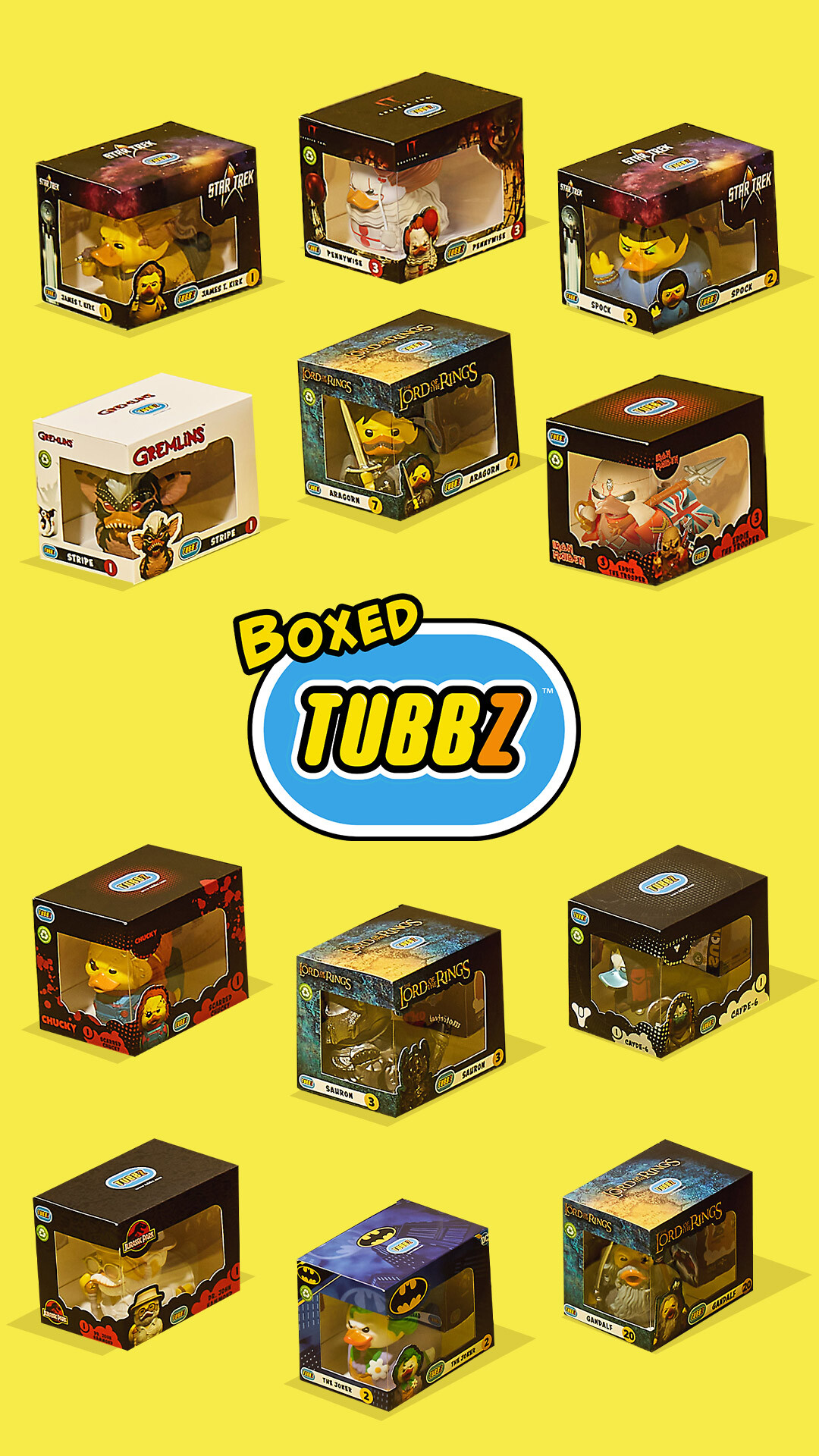Отличная новость для поклонников, которые пропустили ранние издания! Уточки из серии Tubbz остались прежними, но получили новую упаковку. Они упакованы в фирменную коробку с окном, чтобы ваши любимые персонажи были сразу на виду!